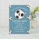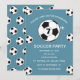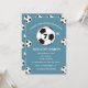 7:e Födelsedagsfest för en fotboll fläkt, sport, barn, pojkar, för honom. Blå och vit, modern inbjudan till elegant födelsedagsfest. Anpassa den med din information.