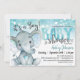 Blåelefantpojkens babyduschinbjudan. Färg innehåller vattenfärgsblått, vitt och grått. Underbar för djungeldjur eller nöjesduschar i safari.