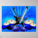Blåelektriska gitarrer, trummor och högtalare poster