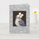 Blåfågel från baby med rödhatt på grått-luddad bakgrund. Grått-luddig bakgrund på insidan av kortet också.