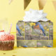 Blåfågel sjunger in i en gul narciss presentpapper