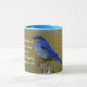 Den här coolan mugg har ett fantastiskt foto på en bergsblåfågel med det inspirerande citatet: "Var som blåfågeln som aldrig är blå, för han vet från sin uppfostran vad sången kan göra." Fotografi skapat av prisbelönt fotograf Maria Jeffs.