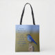 Det här vackra blåfågelcitatet till väskan har ett fantastiskt foto på en bergsblåfågel med det inspirerande citatet: "Var som blåfågeln som aldrig är blå, för han vet från sin upphöjning vad sången kan göra." Lägg till ditt eget anpassningsbar-meddelande för att göra den här designen till en egen. Fotografi skapat av prisbelönt fotograf Maria Jeffs.