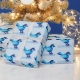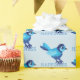 Blå lyckfågel som består av punkter som liknar kor-stygn Bakgrund är ljusblått, men ser också bra på vit fågel på ord Happiness Uppfriskande papper för alla lycklig tillfälle