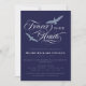 Den blå begravningsinbjudan med kraftigt blåa fåglar som ramlar in för evigt i våra hjärtan i typsnitt på ett vackert snabbt sätt. Lägg till ett foto på den andra sidan. Personlig med ett foto på baksidan.
