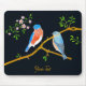 En musmatta med vacker bild på ett par blåfåglar. Bakgrunden, bilden och texten kan anpassas. Originalkonst av W.B.