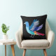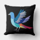 En stiliserad fågel med vibrerande blått, lila och röda fjädrar står mot en fast svart bakgrund. Dess elegant vingar är utdragen och har en slående kombination av färg och en elegant och modern utformning.