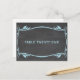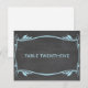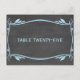 Elegant och trendig Flourish Chalkboard-Bordsnummer vykort med en krita och en finare-snurra och löv art deco gräns i ljusblå form. Enkel att anpassa, lägg helt enkelt till rätt bordsnummer i den text fält tillhandahåller. Klicka på Anpassa om du vill söka efter fler anpassningsalternativ.