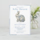 Cute vattenfärgskanin i baby med blommönster. Blåfärgad ram gör denna enkla inbjudan-perfekt för din pojke firande. 100 % kundtillfredsställelse med "Zazzle"
