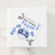 Kort för inbjudan till babydusch för biltemat i tävling med vattenfärgsillustrationer av en blå tävling-bil.