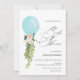 Blåfärgad ballonkalligrafiskript, babyskor inbjudningar