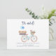 Vattenfärgsannonskort med feminin cykel med flytta basket och bagage på baksätet. Perfekt att låta vänner och familj få veta om din nya adress och var party kommer att bli när man bosätter sig. Lägg till den nya informationen och ett meddelande om anpassningsbar på motsatt sida genom att klicka på knappen "Anpassa".