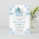 Blåfärgad blåfärgad Blommigt Björnbeläggning Babys Inbjudningar