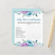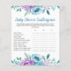 Behåll dina babyduschgäster med det här roligten-spridningsspelet som är formaterat med vackra blommigtar för blått och lila vattenfärg.