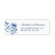 Skapa din egen personligs returadressetikett. Den här adressetiketten har en blå vattenfärgsblombukett som matchar inbjudan.