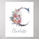 Blåfärgad Blommigt vattenfärg Monogram C Efternamn Poster