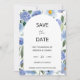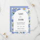 Med en fantastisk blandning av delikata blå blommigtar med blå vattenfärg ger detta Spara datumkort en säker, naturinspirerad bild av ditt uttalande i bröllop. De mjuka blånyheterna och de charmerande botaniska accenterna skapar ett tidlöst och sofistikerat utseende, skapar detta kort i perfektens prelude till din speciella dag. Med en mjuk men sofistikerad design är det det perfekta sättet att låta dina nära och kära veta när de ska märka sina kalendrar för din speciella dag.