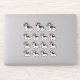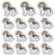Desteis ursprungliga illustration av en vidlyftig blåaktig tecknad jackar hund av färg Beagle-ras. Hund design placeras 15 gånger på lakan. De tre främsta är något större än de övriga tolv.