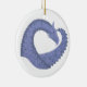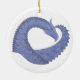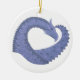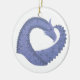 Blåfärgad grått-hjärtdragon på vitt julgransprydnad keramik