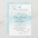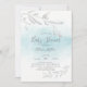 Söt blå vattenfärgsduschinbjudan med en samordnande återkoppling till en pojkbarndusch.