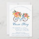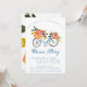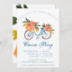 Gå med oss fira den blivande bruden! Den här söta inbjudan har en blå vattenfärgscykel och en basket av blommor.