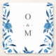 Blåfärgad och vit blommigt bröllop monogram underlägg papper kvadrat