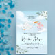 Dive i charmen för Blue and White Watercolor Baby Shower-inbjudan. Mjuka nyanser av blå och vit blandning i ett mästerverk med vattenfärg, vilket ger en känsla av lugn och förväntan. De ömtåliga penseldragen skapar en konstnärlig bakgrund som anger tonen för ett sött och snyggt firande. Denna inbjudan utlovar en smula sofistikering och en antydan om stollig, skapar den introduktion i perfekten till ett glädjande tillfälle som välkomnar ett nytt glädjeslag.