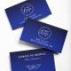 Skapa dina egna dekorativa affärskort för logotyp för små företag med plats för ett mobilt nummer och en webbplats-URL på framsidan och mer kontaktinformation på baksidan. Anpassa teckensnittet stilar för att matcha logotypen. Bakgrunden har en svartvit, marin och royal blå gradient digitalgrafik. Anpassa elegantens kalligrafi och det moderna teckensnittet stil eller vit färg i personligen efter behov för att matcha logotypens bild.