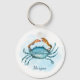 Lägg till en namn eller annan text om du vill anpassa den här söta nyckelkedjan vid kusten med en söt vattenfärgsblåa krabba på en stänk av havsvågen.