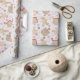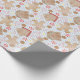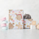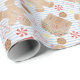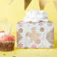 Denna berömvärda pappra julomslutning har ett vattenfärgat gingerbröd, choklad chip och sockerkakor med pepparmynta och polkagrisar på en blå och vit strimlad bakgrund.