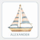 De här söta klistermärkena har en vacker sjöfärgsbåt med blått och krämt rand. Anpassa med ditt val av namn eller speciell text.