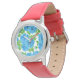 Blått ro med löv och buteljer färgade i vattenfärg.