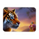 Det fantastiska blåfärgade bergslandskapet och rosa blommor AI skapade konstgjord AI Art skapat med minx267