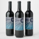 Blåfärgad toningsdesign Sol Måne Mandala Vinflaska Etikett