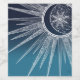 En magisk, stollig guld sol och måne mandala kvällsblå och tealgradient med blommor och löv, stampar, stjärnor, punkter, diamanter, cirklar, trianglar, chevron, sjöjungfru, geometrisk mönster, med ett vibrerande, glödande vitt färg, med ett halvljust måne, en mandalblomstjärna, på en marin flotta blå, teal- och ljusblå övertoningsbakgrund. Detta vackra, mystiska, universaltema, söta sol, henna, mandala stil-teckningar, originalbildtryck.