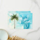Snyggt modern vattenfärg THANK DU kortar med text framför. Blå, teal, turkos, färg (vatten, stranddesign) med handflatan träd. Script brev. BACK OF CARD är tomt och du kan lägga till ditt handskrivna meddelande. Perfekt för alla söderdestinationer, tropiska strand, Hawaii... bröllop