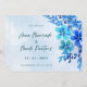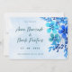 Vi presenterar den förtjusande blå Blommigten vattenfärg Spara datuminbjudan - en fantastisk återgivning av naturens skönhet i fullt blomma. Med sina ömtåliga vattenfärger blommor i blå nyanser fångar den här inbjudan det väsentliga i en serenträdgård i höjden av sommaren. Det mjuka, drömmande färg och den invecklade blommigten är perfekt för par, som uppskattar naturens tidlösa skönhet och vill förse bröllop med en liten bit romantik och stollig. Layouten är enkel och elegant, med gott om utrymme för de viktigaste detaljerna i evenemanget, medan blommigtens accenttecken tillför en aning sofistikering och charm. Vare sig du planerar ett trädgårdsbröllop eller en romantisk havsbottenceremoni, är den här inbjudan perfekten för att ange tonen för ditt evenemang och tala om för dina gäster att de är inne för en verkligt magisk upplevelse. Så varför nöja sig med en mundane för att spara det datum då du kan göra en påstående med det här blåa Blommigten vattenfärgsmästerverket? Låt kärlek blomma med en inbjudan som är lika oförglömlig som kärlek-historien