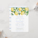 Modern lös färgscitroner och glansig grönt lämnar med en tunn, rand omvänd för denna moderna bröllopsinbjudan.