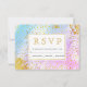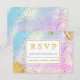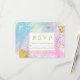 Blåfärgad och rosa vattenfärg, konfektyr av guld och svarskort för bröllop OSA.