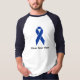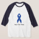 Colon Cancer Awareness Blue Ribbon T- Shirt för att stödja patienter och överlevande från koloncancer. Lägg enkelt till ditt eget meddelande under bilden av det blå menyfliksområdet.