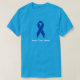 Colon Cancer Awareness Blue Ribbon T- Shirt för att stödja patienter och överlevande från koloncancer. Lägg enkelt till ditt eget meddelande under bilden av det blå menyfliksområdet.