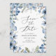 Blåfärgat Bröllop spara datum-kort för Blommigt Inbjudningar
