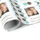 En polka punkt och lodrätt stripe mönster i nyanser av akvblått och chokladbrun bildar en bakgrund till text- och fotomallar som kan vara personlig till kostym vid ditt speciella tillfälle. PHOTO - Byt ut den mot det möhippa paret, en nära vän, familjemedlem eller arbetskollega. WORDING - Anpassa den.
