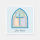 ========================== FÖRSTA KOMBINATIONEN, Baptism, KÄRNapkins: Fönster av rostat glas i blått, gult och mint, vi visar blek blue men du kan ändra BACKGROUND FÄRG till vad som helst! (1) All text, typsnitt, färg, storlekar kan ändras, klicka bara på knappen CUSTOMIZE. (2) BASE färg kan bytas ut mot färg på framsidan och baksidan. (Finns även i rosa.)
