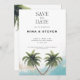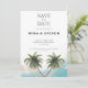Blåfärgat och guld-tropisk strand bröllop spara datumet