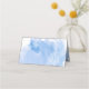 Den moderna abstraktens vattenfärgsblad stänk-blåvrastkort för eskort med handmålad vattenfärg stänk med struktur i blått ton, träd i vitt med snö, snöflingor och vit text.