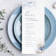 Eleganten under havets tematiska bröllopsmeny för strand innehåller dammiga blåfärgkorall och seaseller, snyggtens manus och typsnittsinformation, modern och romantisk, underbar för havets temade sommarbröllop, vintertropisk destination bröllop, kusthav, temed party. Visa alla matchande delar i samlingen.