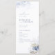 Eleganten under havets tematiska bröllopsprogram för strand innehåller dammiga blå vattenfärgskoral och seaseller, snyggtens manus och typsnittsinformation, modern och romantisk, underbar för havets temade sommarbröllop, vintertropisk destination bröllop, kusthav, temed party. Visa alla matchande delar i samlingen.