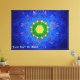 En rektangulär gult av rotationstyp som påminner om 1960-talets slips, med flera färgader och där blues dominerar. Lägg till din egen text.