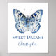 Anpassa den här blå och vita vattenfärgen butterfly-väggkonsten poster, med texten och spädbarn namn.
